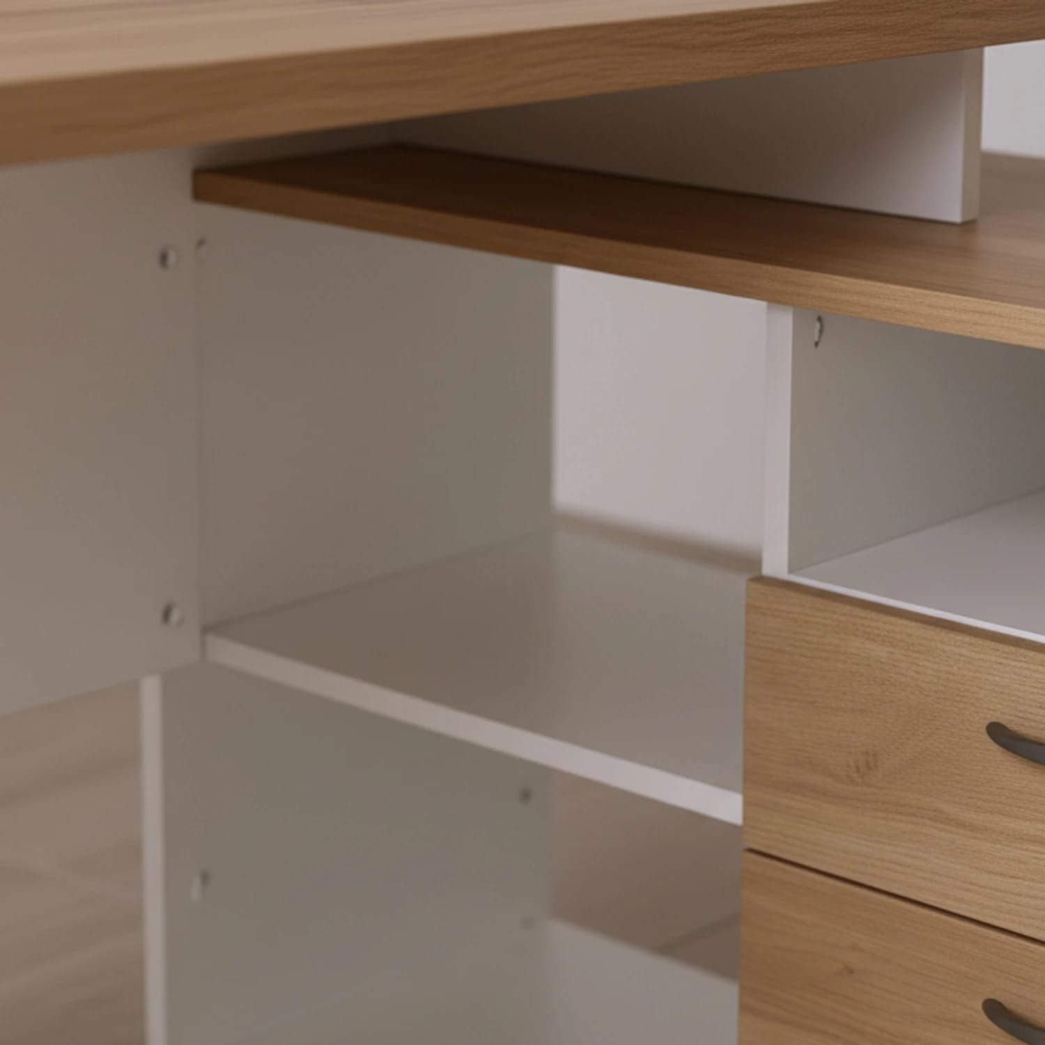 •Tapas y frentes en melamina color natural.