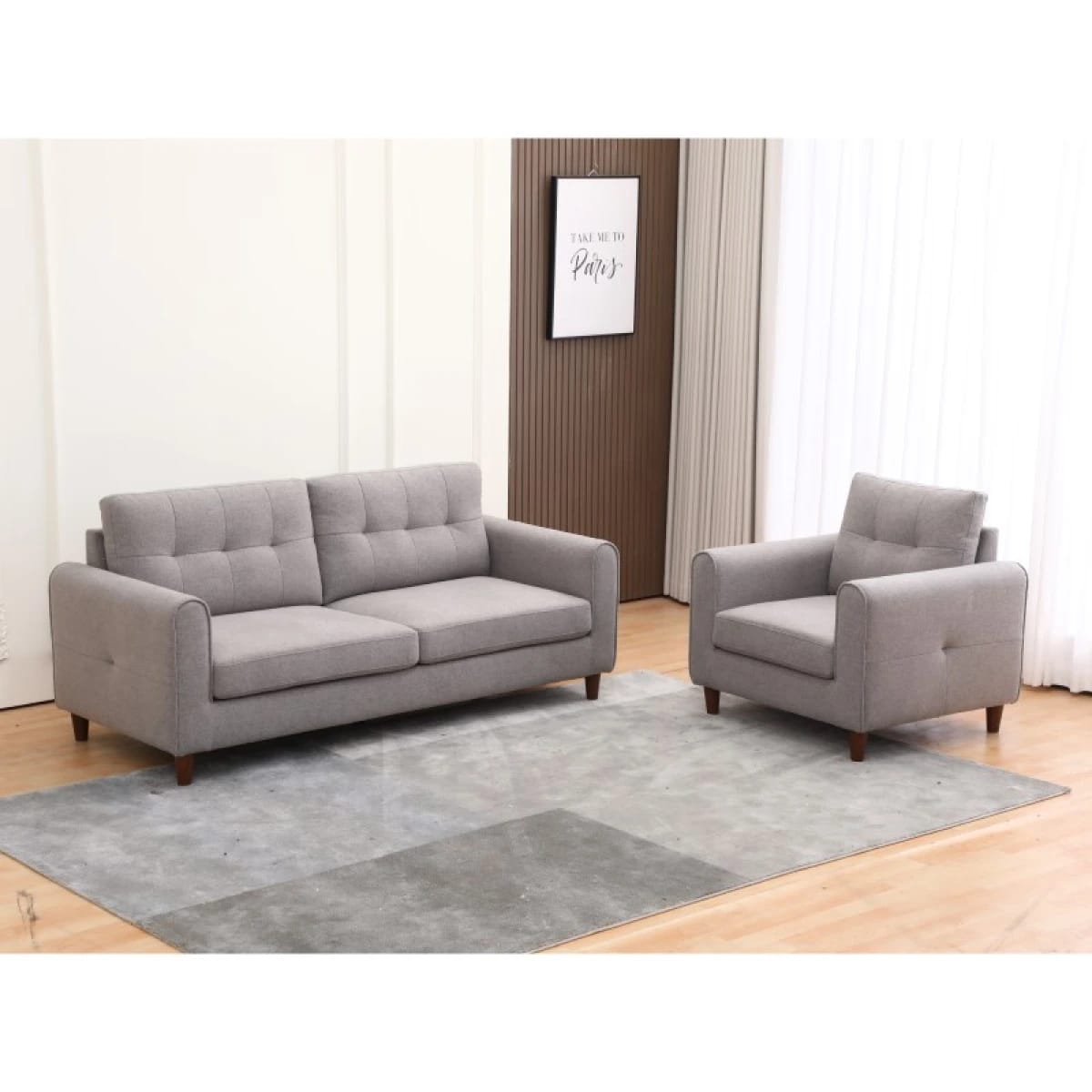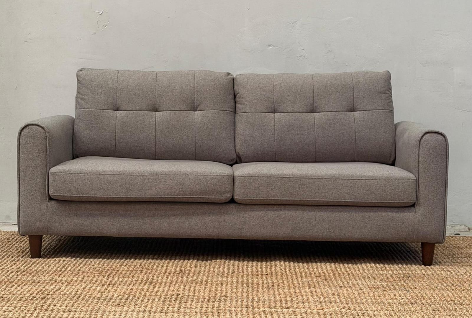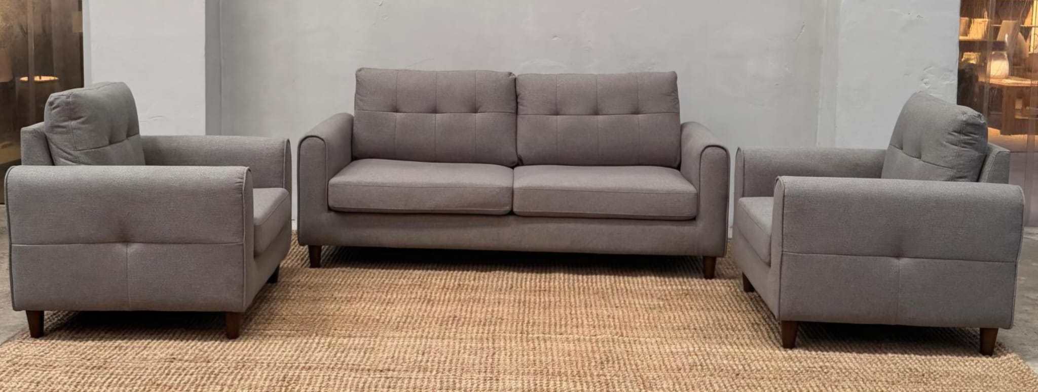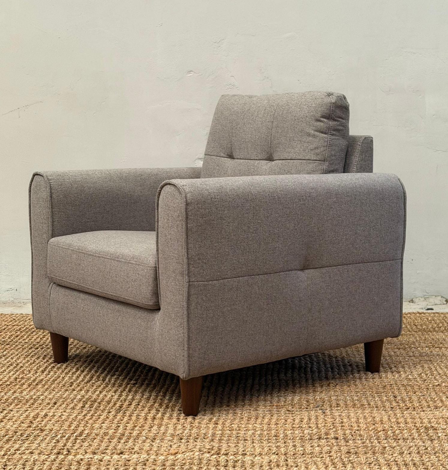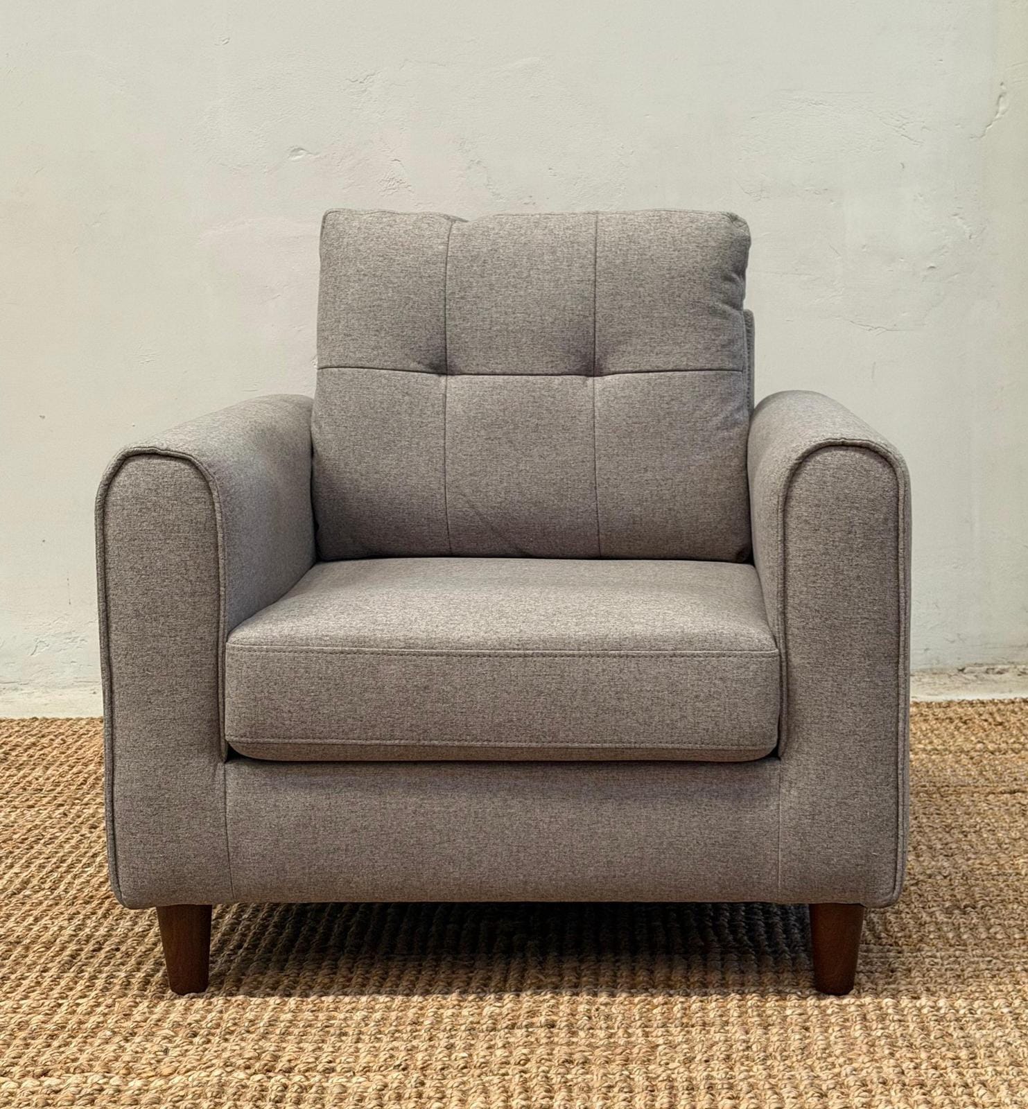 •Tapizado en chenille color gris claro.